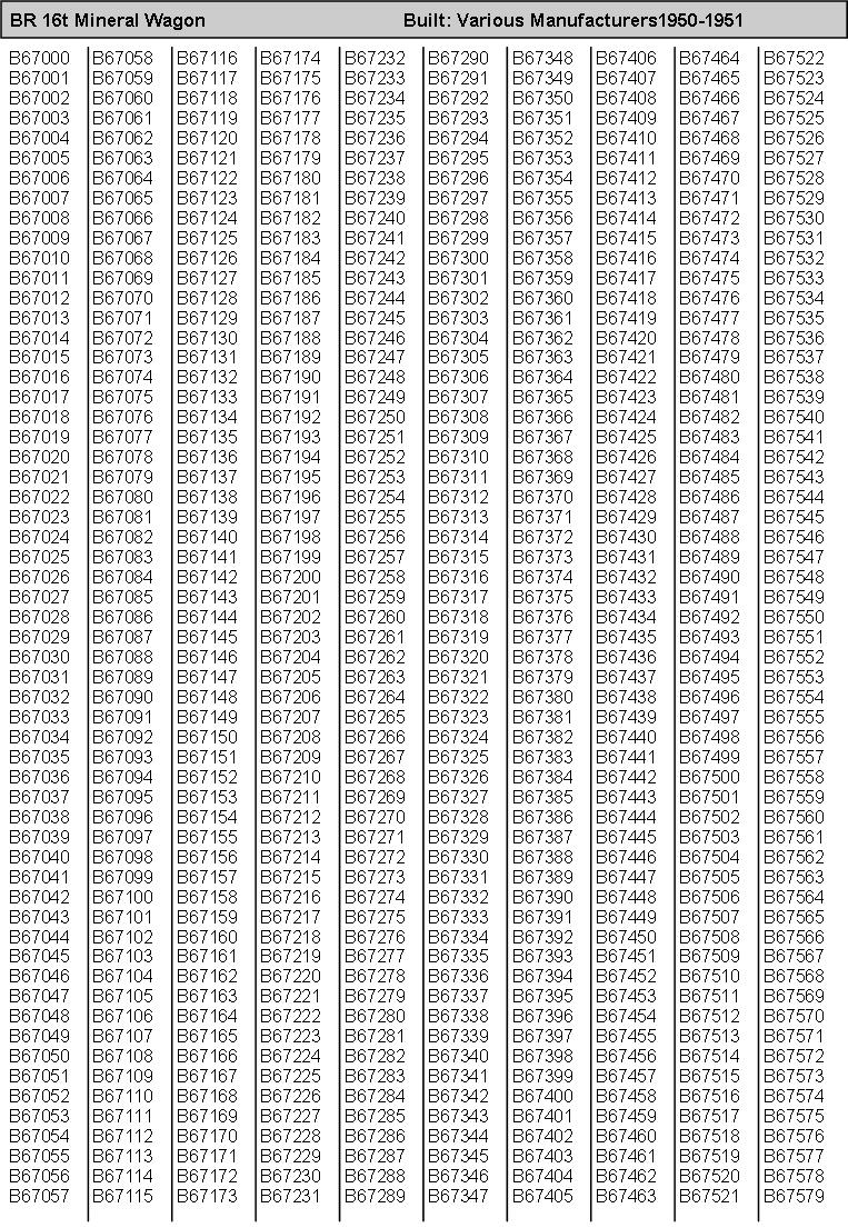 British Railways Wagons - a Numerical History - Mineral Wagons (B64000 - B199307)