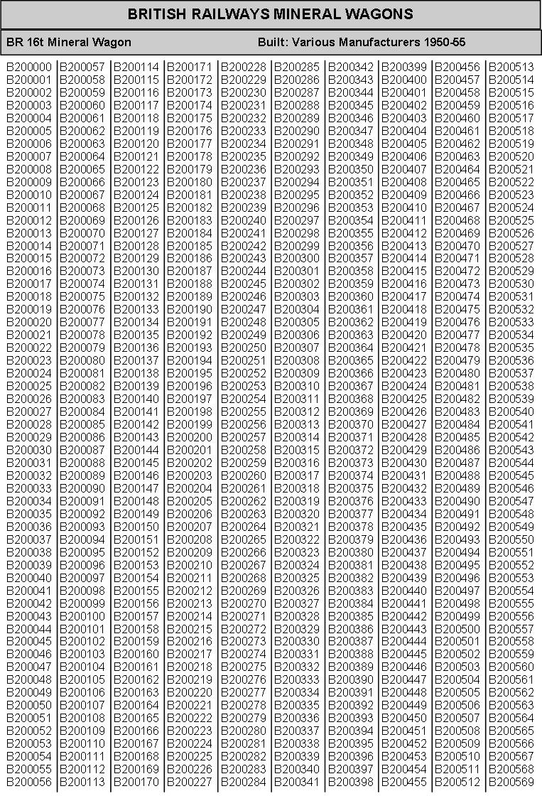 British Railways Wagons - a Numerical History - Mineral Wagons (B200000 - B390149 & B550000 -