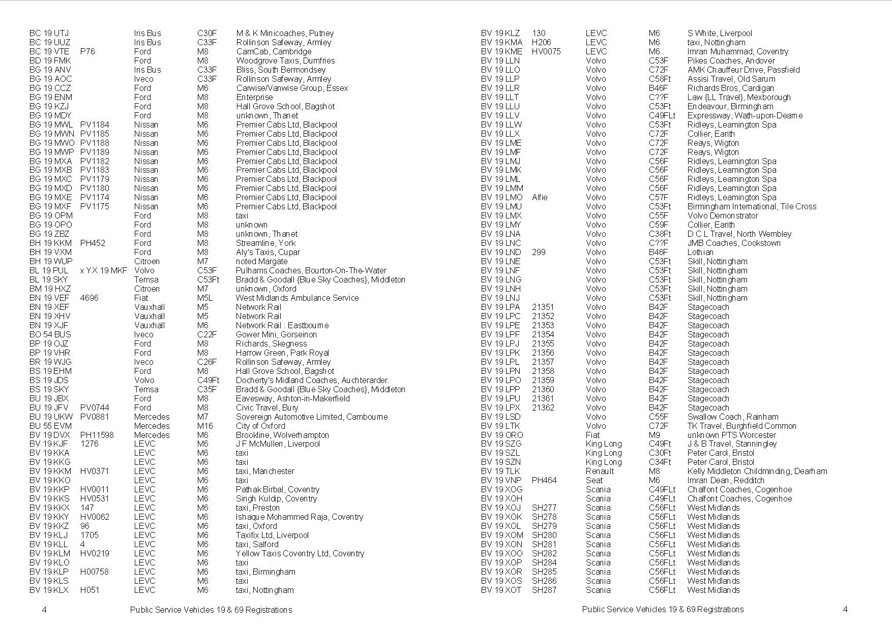This is a completely new book and lists all the 19 and 69 registered Public Service Vehicles, covering coaches, buses, mini buses, large taxis and a section for London taxis.