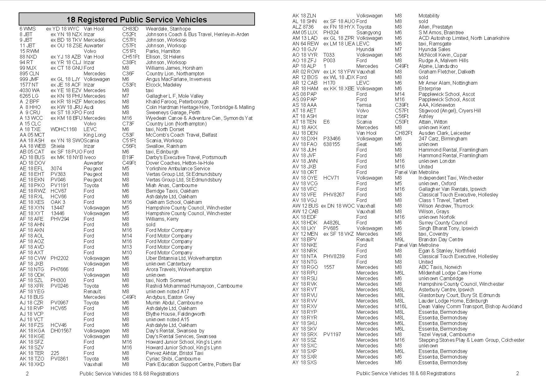 This is the second book in our new Public Service Vehicles series, and lists all the 18 and 68 registered vehicles, covering coaches, buses, mini buses, large taxis and a section for London taxis.
