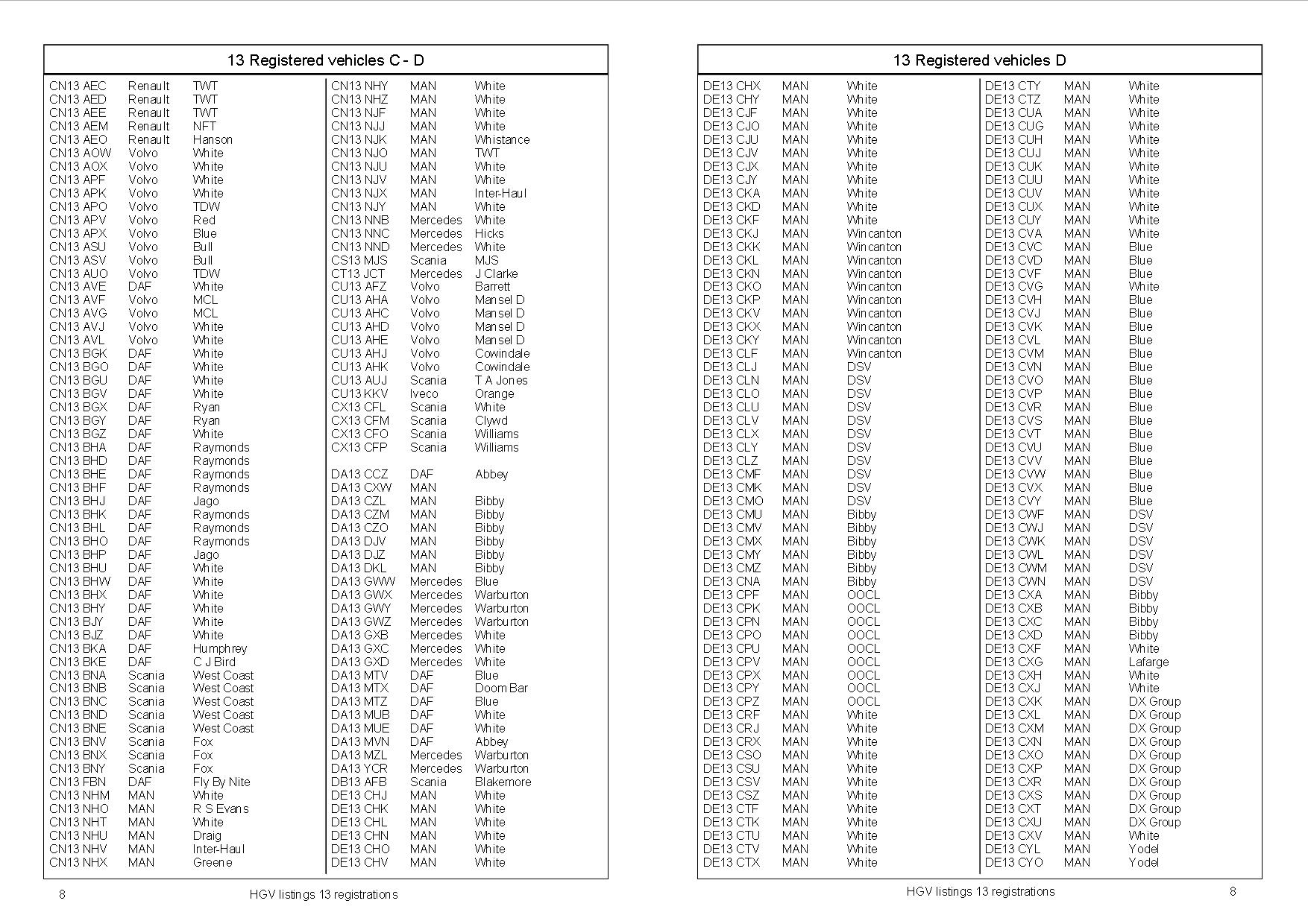 This is a further volume in our new series of books listing the registrations of the UK`s HGV fleet. This volume covers the 13 series registrations, and as with the previous volumes, vehicles are listed in registration number order. Also shown is the vehicle manufacturer and the current owner (if known), or if not, the present livery. Fire engines and Council vehicles are also included. Other than subsequent scrappings, these books will require little updating by the user and can therefore be used for years to come! This volume contains over 10,000 registrations.