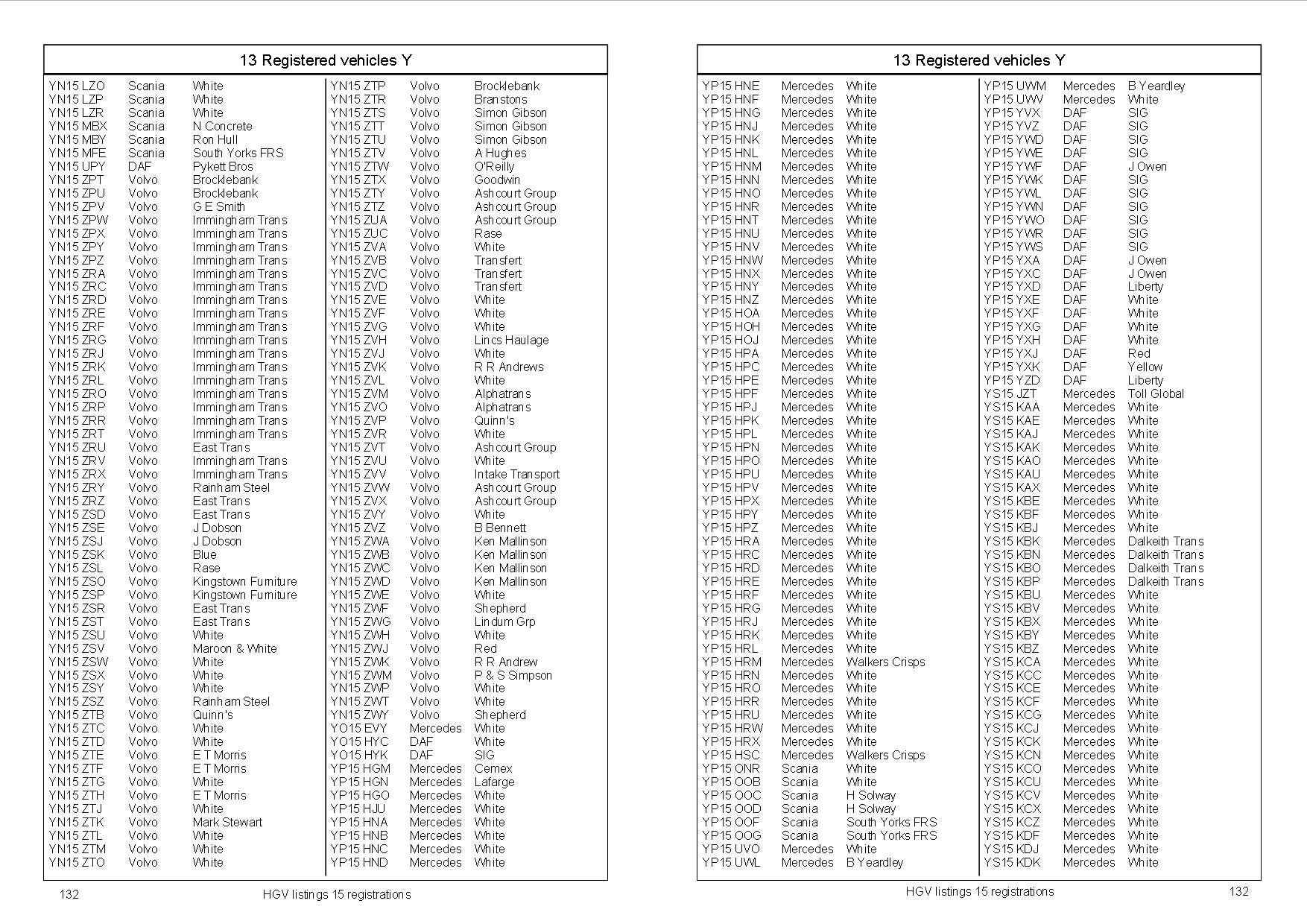 This is a further volume in our new series of books listing the registrations of the UK`s HGV fleet. This volume covers the 15 series registrations, and as with the previous volumes, vehicles are listed in registration number order. Also shown is the vehicle manufacturer and the current owner (if known), or if not, the present livery. Fire engines and Council vehicles are also included. Other than subsequent scrappings, these books will require little updating by the user and can therefore be used for years to come!