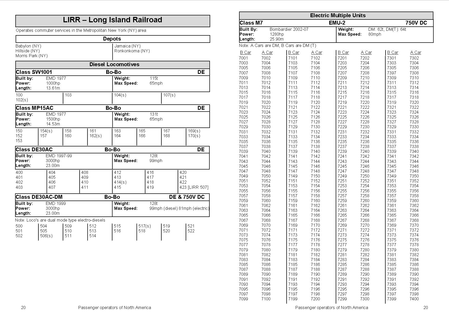 This is a brand new book in our North America series, this one covers the Loco and Unit fleets of all the Passenger Operators in North America. Also included are notable independent freight companies not previously included in our previous book covering the class one operators. Along with the individual loco and unit numbers, it lists the vehicle type, builder, build dates, power rating, weight and maximum speed where known.