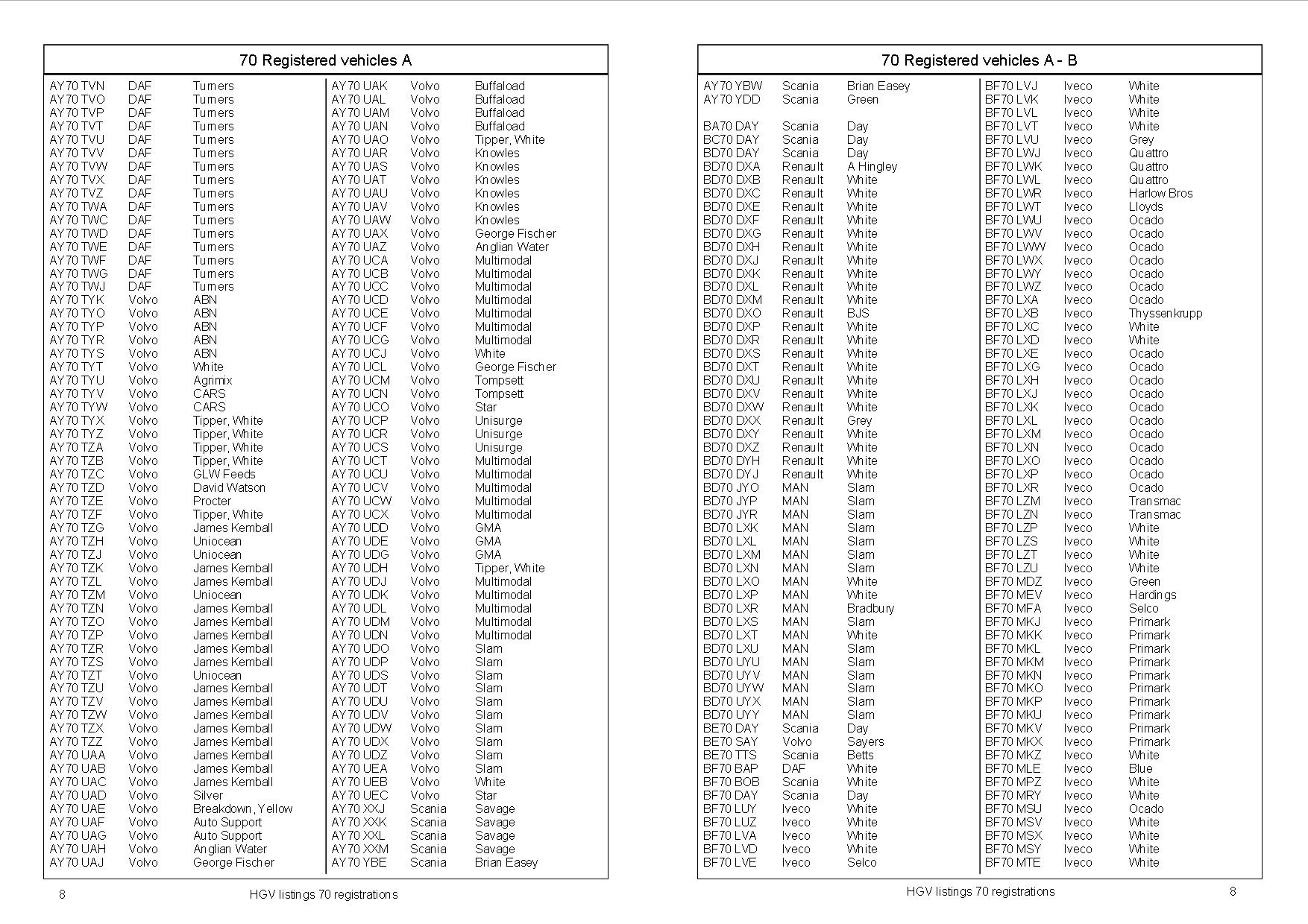 This book is a new edition in our HGV spotting books series and covers the 70 registrations, of which over 17,300 vehicles are listed.