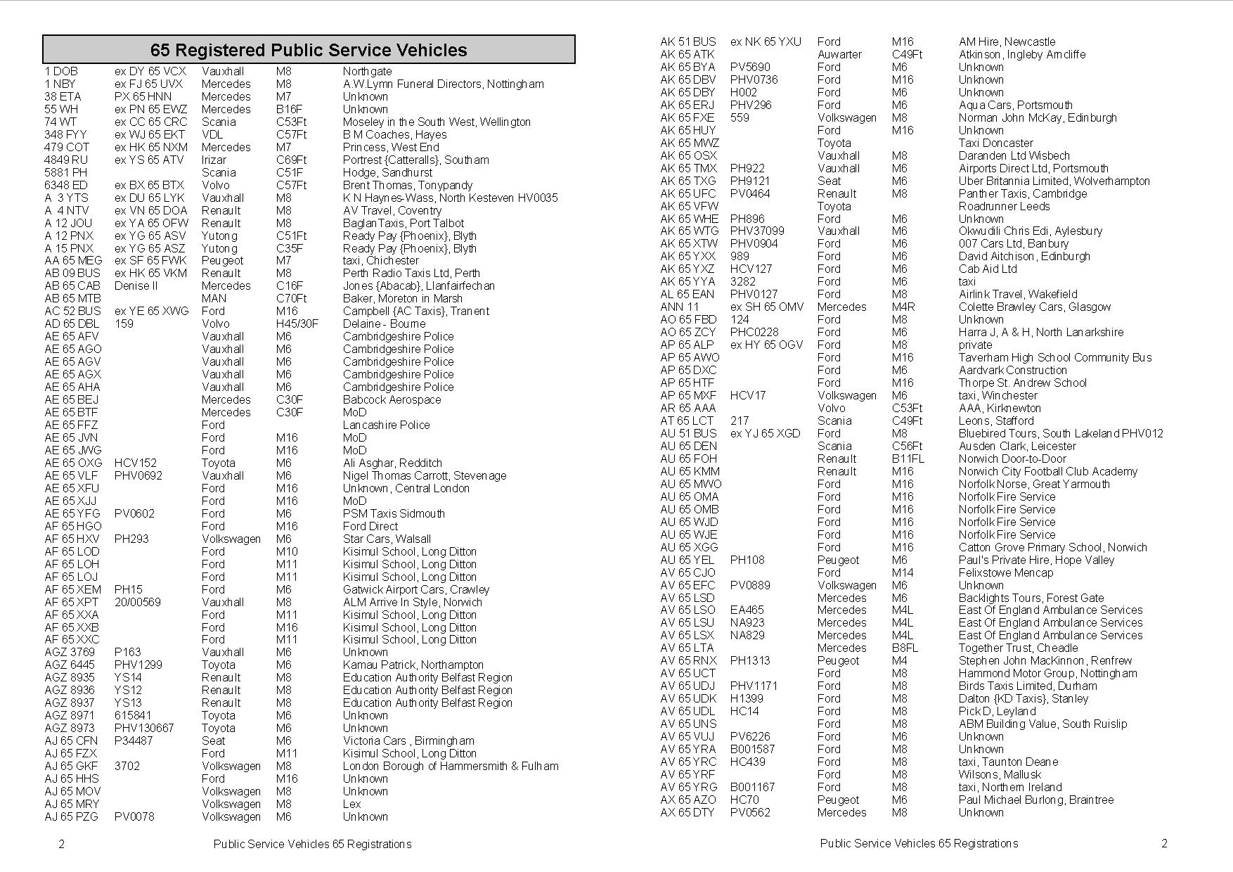-This is the sixth book in our new Public Service Vehicles series, and lists all the 65 registered vehicles, covering coaches, buses, mini buses, large taxis and a section for London