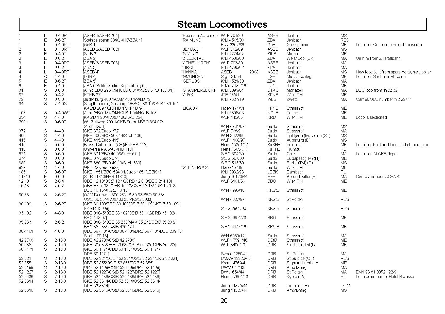 This is the first edition of a two brand new volumes which list all the preserved locomotives and units of every country in Europe, and even few in North Africa!