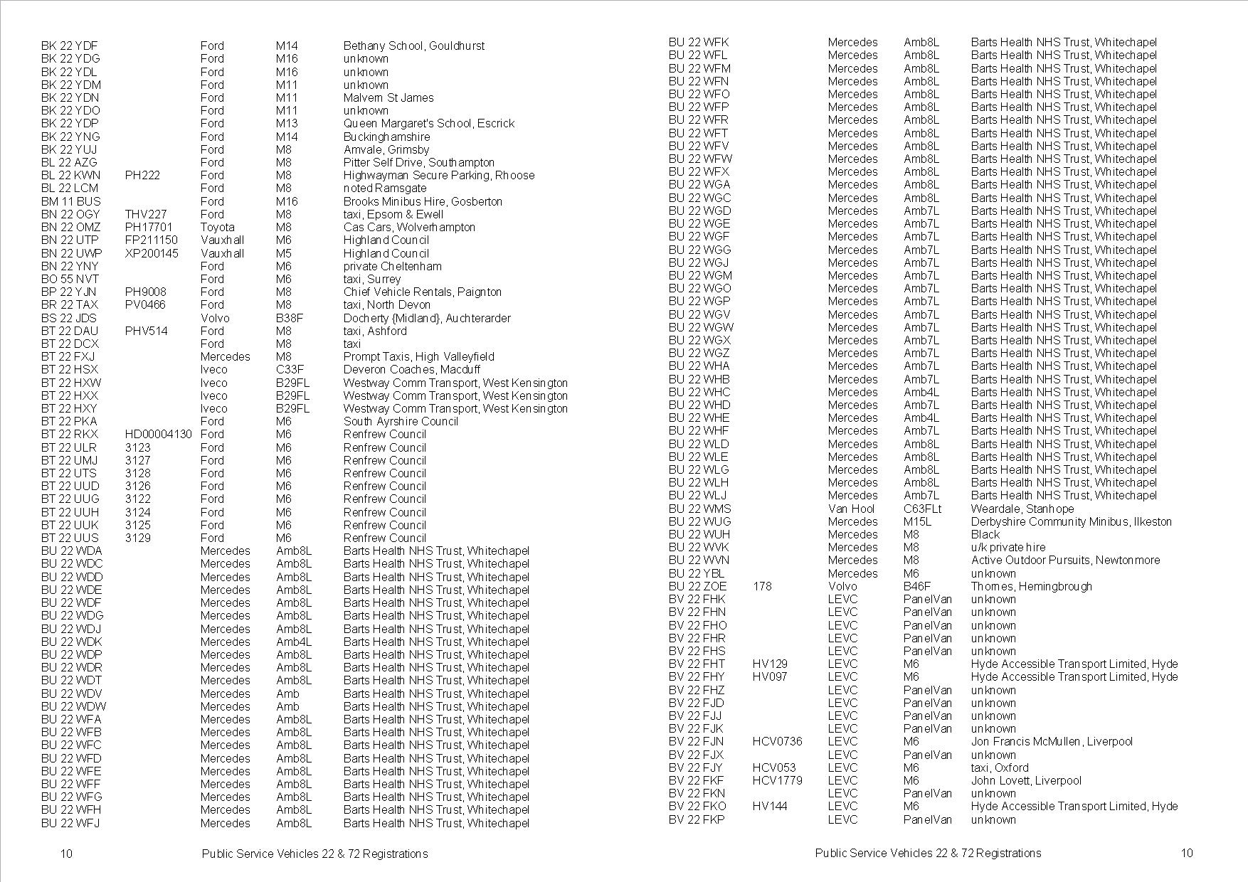 This is the 9th book in our new Public Service Vehicles series, and lists all the 22 and 72 registered vehicles, covering coaches, buses, mini buses, large taxis and a section for London Taxis
